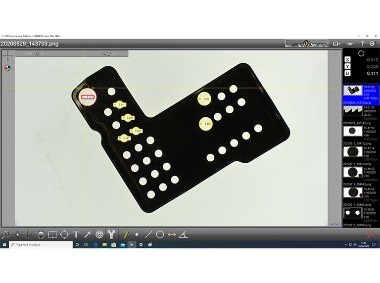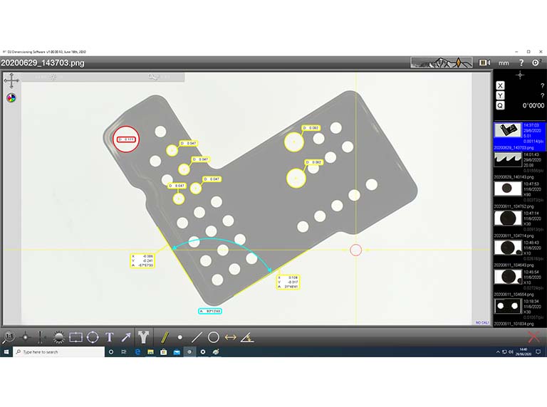 Statt den gewünschten Messpunkt manuell zu definieren, erzeugt man mit der Videokantenerkennung von DimensionTwo den optimalen Punkt an einer Kante für die Messung viel schneller und genauer. Sie können nicht nur zwischen verschiedenen Elementen messen, sondern auch Bilder mit diesen deutlich gekennzeichneten Details speichern und freigeben.